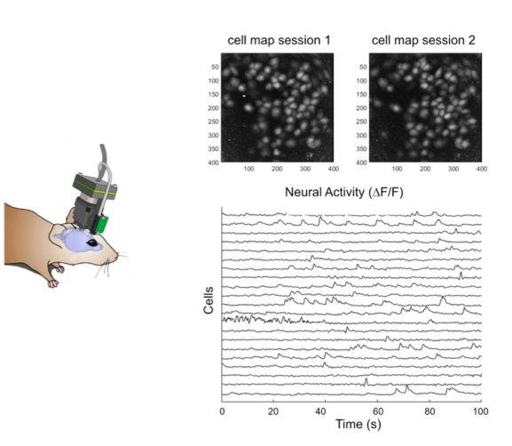 We combine calcium imaging and electrophysiology with hippocampal dependent memory tasks to assess the functional role of identified neurons or pathways using chemo-genetic or optogenetic manipulations.